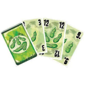 5 Cornichons est un jeu de plis de Friedman Friese, dans lequel votre but est de ne pas remporter le dernier pli ! Ce n’est pas si simple. Durant votre tour, vous avez deux options: prendre un pli en jouant une carte forte ou vous défausser d’une carte faible. Mais il ne suffit pas de garder en main une carte faible pour le dernier pli. Il vous faudra aussi des cartes fortes pour remporter les plis clefs.
