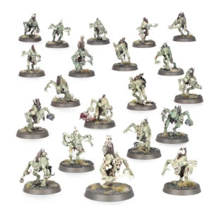 Ce kit plastique contient 20 Crypt Ghouls, et peut servir à assembler un Crypt Ghast Courtier – la boîte inclut les warscrolls pour les deux. Comprend 20 socles ronds Citadel de 25mm.