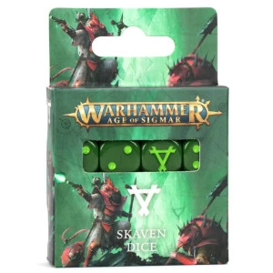 Chaque dé mesure 16mm de côté, présente des arêtes arrondies et est moulé en plastique vert sombre. Les marquages ressortent grâce à leur couleur vert vif, et la face du 6 arbore l’icône des Skavens.
