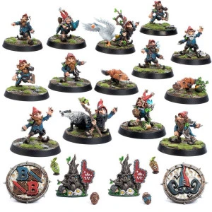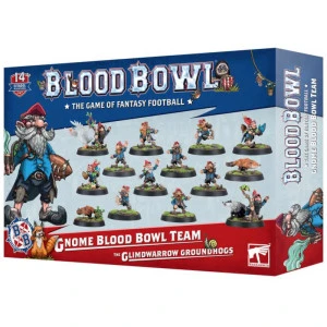 Ce kit plastique permet d’assembler les Glimdwarrow Groundhogs, une équipe de Gnomes utilisable dans les parties de Blood Bowl. L’équipe est composée de huit Gnome Linemen, de deux Woodland Foxes, de deux Gnome Illusionists et de deux Gnome Beastmasters. Vous trouverez quatre options de têtes pouvant être utilisées sur n’importe lequel des quatre différents corps de Lineman, ainsi que deux choix de têtes pour chaque autre poste. Les Beastmasters ont deux options de cime pour leur bâton, ainsi que le choix entre une oie ou un blaireau comme compagnon. De plus, vous trouverez des pièces Blood Bowl double face, deux marqueurs de tour et de relance, quatre ballons et une planche de décalcos.