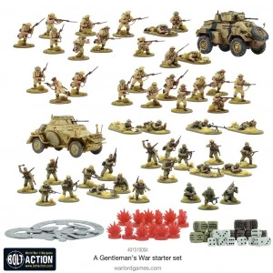 A Gentleman’s War se concentre sur l’action menée à travers la campagne aride et poussiéreuse du désert occidental pendant la Seconde Guerre mondiale. Cet ensemble de démarrage Bolt Action oppose les forces de la 8e armée britannique (plus communément appelées les rats du désert) à leurs ennemis de l’Axe, le Deutsche Afrika Korps allemande. Bien que les combats dans ce théâtre aient été intenses, ils avaient tendance à manquer du fanatisme et des atrocités observés dans d’autres théâtres de guerre et sont devenus connus comme une guerre de gentlemen.