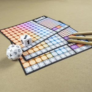Bresk! est un jeu de dés dans lequel les joueurs tentent de former des mots sur leurs cartes de score à l’aide des dés.