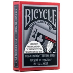 Les cartes Tragic Royalty arborent un motif audacieux en rouge et noir ainsi que des figures fantasques et macabres. Une fois dans l’obscurité et à notre plus grande surprise, les cartes se mettent à briller sous une lumière noire.