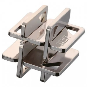 Les pièces en forme de plaque interagissent pour obtenir l’équilibre parfait. Les pièces s’effondrent instantanément, ce qui paraît incroyable quand on pense au nombre de mouvements consécutifs qu’il faut faire avec les pièces pour les séparer.