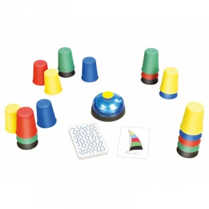 Attention, il est important de bien suivre l’ordre et le sens des couleurs ! Dès qu’un joueur a terminé, il appuie vite sur la sonnette. Le plus rapide à réaliser correctement sa série remporte la carte en jeu et c’est reparti pour un tour. Restez bien attentifs et ne perdez pas de vue votre objectif car pour gagner à Crazy Cups, il faut avoir de la suite dans les gobelets !