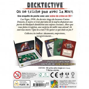 On ne triche pas avec la mort est la 5ème enquête de la série Decktective, le jeu d’enquête de poche avec une scène de crime 3D !