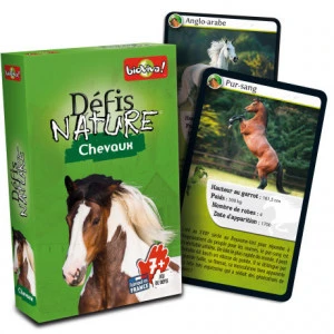 Défis Nature vous emmène à la rencontre des chevaux les plus majestueux. Découvrez les espèces les plus rares, puis pariez sur les points forts de vos équidés pour collecter toutes les cartes du jeu et remporter la partie.