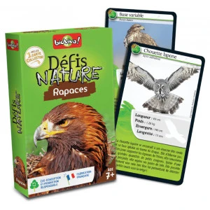 Défis Nature vous emmène à la rencontre des rapaces les plus surprenants de notre planète. Découvrez les espèces à préserver, puis pariez sur les points forts de vos oiseaux pour collecter toutes les cartes du jeu et remporter la partie. Alors, prêts à relever le défi ?