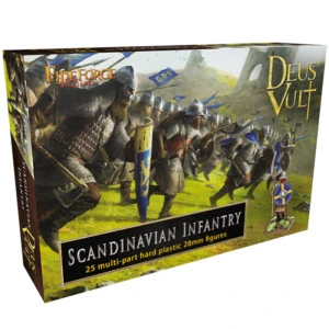 Cette boîte vous permet de construire jusqu’à 25 soldats d’infanterie scandinave post-viking en armure lourde.