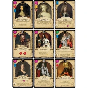 60 cartes personnages uniques illustrées par des peintures d’époque. Contient également un livre d’anecdotes historiques.