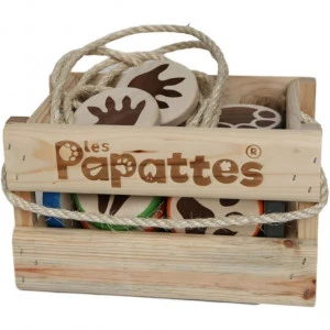Les Papattes est un jeu de palets en bois qui invite deux à quatre joueurs à jouer en extérieur, dans un jardin, un parc ou sur la plage. Chaque joueur choisit un animal qu’il devra mener à la rivière, représentée par un fil tendu à sept mètres de la zone de lancer. Chacun leur tour, les joueurs lancent une papatte (palet) le plus proche possible de la rivière en prenant garde à ne pas dépasser la rivière car les crocodiles rodent juste derrière ! Le parcours est semé d’embûches car les croche-papattes, les glissades sur peaux de bananes et les papattes cassées compliquent la partie.