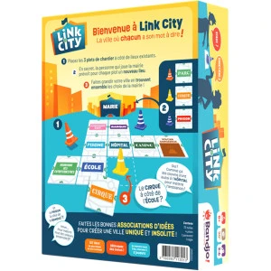 Dans ce jeu d’ambiance coopératif, les joueurs créent en 6 tours palpitants la ville la plus grande possible, pour maximiser les connexions entre les tuiles Lieu et marquer des points. À chaque tour, une personne différente joue le rôle de la mairie. Sa mission : relier secrètement 3 nouveaux lieux aux emplacements marqués par 3 plots de chantier.