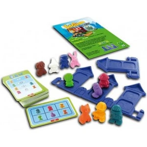 Devinez dans quelles maisons vivent plusieurs personnages et leurs animaux en vous basant sur les indices indiqués sur des cartes d’énigmes. Placez les figurines de personnages et animaux dans les maisons adéquates, puis vérifiez si vous avez visé juste en retournant la carte pour regarder la solution.