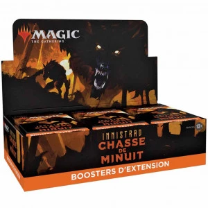 Cette boite contient 30 boosters d’Extension Magic The Gathering – Innistrad : Chasse de Minuit. Chaque booster contient 12 cartes.