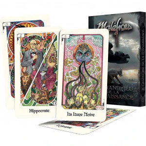 Le Grand Jeu de la Connaissance (le légendaire tarot de Maléfices) est composé de vingt-deux cartes et a été ré illustré à l’occasion de cette 4e édition.
