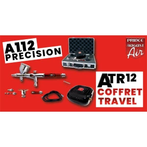 Le coffret Prince August Travel ATR12 comprend L’Aérographe Haute Définition A112. Le micro-compresseur AC04 Equipé d’un système de marche/arrêt automatique.