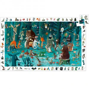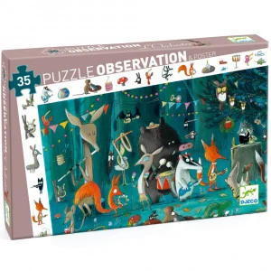 Un puzzle observation de 35 pièces représentant une forêt dans laquelle les animaux jouent de la musique. Qui joue de la guitare ? Qui joue du tambour ? L’enfant crée son puzzle puis s’amuse à retrouver dans l’image les éléments de la frise.
