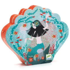 Nageons avec les sirènes et les poissons dans un paradis aquatique. Un magnifique puzzle de 54 pièces dans une boîte élégante en forme de coquillage.