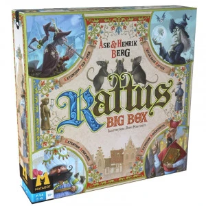 Rattus : Big Box comprend non seulement plusieurs extensions et promos déjà parues, mais aussi du matériel inédit, des modules et des cartes bonus. Plus précisément, cette nouvelle édition de la gamme Rattus contient tout le matériel du jeu de base et des extensions Pied Piper, Africanus et Academicus. Du nouveau contenu supplémentaire est inclus, et les joueurs peuvent ajouter les nouveaux modules « Guildes et Auberges » et « Bonus » pour créer encore plus de variété et de défi.