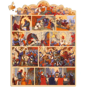 L’enfant reconstitue un puzzle pour découvrir la légende du Roi Arthur sous forme d’une BD muette. Ce magnifique puzzle de 100 pièces est présenté dans une jolie boîte.