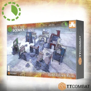 Les ruines de Tumbledown constituent un vaste ensemble de bâtiments en ruine modulaires et de passerelles pour les relier, ce qui vous permet de configurer votre carte de bataille différemment à chaque fois. Chaque section comporte des cases de 25 mm cachées parmi les tuiles de pierre, ce qui permet d’utiliser ce kit pour des jeux de rôle sur table ou des wargames d’escarmouche.