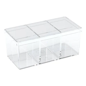 La boîte empilable Stack´n´Safe Card Box 480 dans la gamme de boîtes pour cartes haute qualité ULTIMATE GUARD est fabriquée en polystyrène transparent et peut contenir jusqu´à 480 (6 x 80) cartes en pochettes. Cette boîte robuste comporte 6 compartiments égaux et dispose de 3 intercalaires amovibles. Le couvercle facile à soulever s´emboîte parfaitement et garde vos cartes en sécurité.