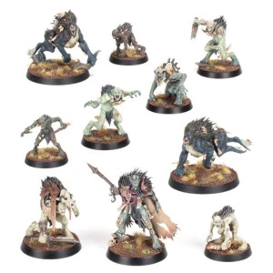 Ce kit plastique permet d’assembler une bande complète de Dépeceurs Royaux, à utiliser dans les parties de Warcry. Menée par un abhorrant appelé Maître-dépeceur Royal, cette bande de pisteurs déments et dégénérés arpente les Royaumes Mortels en quête de monstres à abattre. Les Pisteurs Goules, plus petits et plus mobiles, débusquent la proie, tandis que les Écuyers Goregoules aux casques en os se ruent sur la victime affaiblie. Les Barons Dépeceurs et les Chiens d’Abattoirs apportent soutien et vitesse, ce qui permet à la bande d’abattre même les proies les plus redoutables. Ces figurines peuvent également être utilisées dans les parties de Warhammer Age of Sigmar à l’aide des règles gratuites disponible en téléchargement sur le site de Warhammer Community.