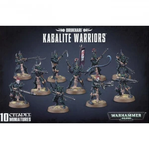 Les guerriers des cabales forment l’ossature de toutes les forces de frappe des Drukhari. Ils sont la caste la plus cruelle et la plus avide de leur société, et tirent leur puissance de la souffrance qu’ils infligent. Les Kabalite Warriors sont des combattants impitoyables aux instincts meurtriers, qui sont menés à la bataille par des Sybarites, maîtres dans les arts de la guerre.
