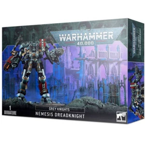 Le Nemesis Dreadknight est l’arme absolue dans la lutte contre le Chaos. Plus grand, plus fort et plus lourdement blindé que ses frères, le Nemesis Dreadknight a été créé pour surclasser et anéantir un démon majeur ou un prince démon. Il faut plusieurs années de formation pour contrôler un Dreadknight, et encore davantage pour le maîtriser, c’est pourquoi les rares pilotes existants font partie des guerriers les plus honorés du Chapitre. Doté de deux poings de combat Némésis et ayant accès aux armes lourdes de l’arsenal Grey Knight, le Nemesis Dreadknight traque les plus terribles adversaires, sa mission étant des les éliminer entièrement.