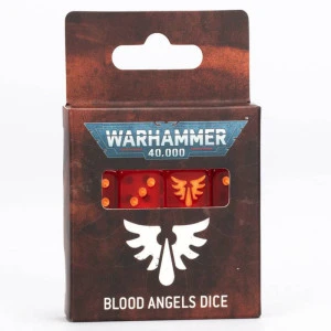 Ce set de 16 dés à six faces aux arêtes carrées pour les parties de Warhammer 40,000 est sur le thème des légendaires Blood Angels. Ces dés sont moulés dans un plastique rouge nacré avec des marquages dorés. Les faces 1 à 5 sont numérotées de manière traditionnelle, mais chaque face du 6 est à la place décorée de l’icône de la goutte de sang ailée des Blood Angels.