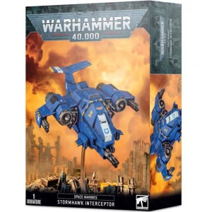 Les Stormhawk Interceptors descendent depuis les vaisseaux en orbite à des vitesses insensées pour intercepter et détruire les appareils ennemis. Ce faisant, ils offrent un spectacle saisissant, sur fond d’hymne à la suprématie aérienne des Space Marines. Leur blindage frontal et leur puissance de feu en font d’excellents chasseurs, qui surgissent des nuages pour exécuter une cible après l’autre dans un déferlement de punition incendiaire. Généralement en schéma d’attaque Véhémence, les escadrons de Stormhawk, nimbés de leurres dorés pour déjouer les missiles adverses, signalent par leur simple présence que dès qu’ils sont quelque part, le ciel appartient à l’Empereur.