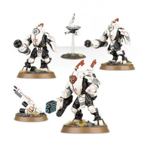 Ce kit plastique pour Warhammer 40k contient 3 XV25 Stealth Battlesuits et un drône en plastique, une unité d’infiltrateurs opérant au marge des armées T’au Empire.