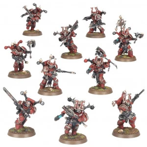Les Berzerks de Khorne se complaisent dans leur rôle de destructeurs sacrés du Dieu du Sang, et leur fanatisme est craint dans toute la galaxie. La rage induite par le warp de ces guerriers d’exception les plonge dans une frénésie meurtrière inarrêtable. Ceux qui les affrontent au combat sont découpés par une pluie de coups furieux portés à l’aide d’armes tronçonneuses vrombissantes, chaque coup étant assez puissant pour trancher membres et têtes et pour briser de lourdes plaques d’armure.