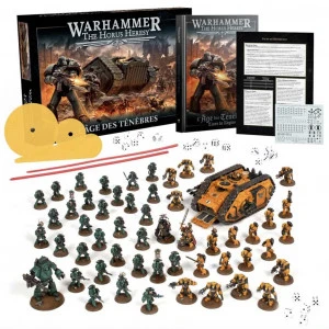 La titanesque boîte Warhammer: The Horus Heresy – L’Âge des Ténèbres propose un contenu d’une richesse stupéfiante, dont l’épais livre de règles qui détaille le cadre et les récits de l’Hérésie d’Horus parmi de splendides photographies et illustrations, en plus des règles de base exhaustives pour pratiquer le jeu. La boîte contient en outre 54 figurines Citadel, dont un Char d’Assaut Spartan massif et une pléthore de Marines Tactiques en armure MkVI « Corvus », de quoi monter deux forces opposées pour jouer sitôt la boîte ouverte, ou composer une grande force de Légion rien qu’à vous. Par ailleurs, il y a là tous les accessoires et références de règles nécessaires pour vous plonger dans les mondes de l’Âge des Ténèbres.