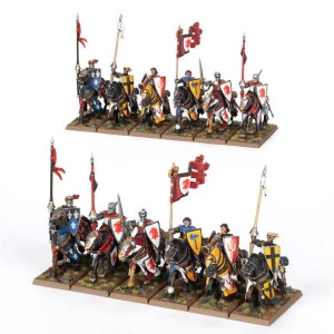 Les Chevaliers du Royaume constituent le gros de la noblesse de Bretonnie et de sa puissance militaire, et ils suscitent le respect par leur statut important et les actes qu’ils accomplissent pour s’en montrer dignes. En revanche, les Chevaliers Errants sont les jeunes fils et filles de la noblesse bretonnienne, de braves guerriers qui doivent encore mériter leurs éperons et atteindre le rang de véritables chevaliers. Protégés par de lourdes armures, montés sur de superbes destriers bretonniens, et rassemblés en un inexorable fer de lance, les Chevaliers Bretonniens en charge sont assez dévastateurs pour briser les hordes ennemies comme du petit bois sous la hache d’un bûcheron.