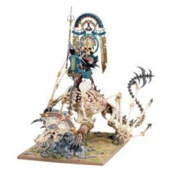 Ce kit plastique permet d’assembler un Roi des Tombes ou un Prêtre Liche monté sur un Dragon d’Os Nécrolithe. Cette pièce centrale terrifiante sera le joyau de toute armée de Rois des Tombes de Khemri, dominant à la fois les champs de bataille et les étagères d’exposition. Le Roi des Tombes se dresse sur une grandiose plate-forme semblable à celle d’un char sur le dos du Dragon d’Os, et il peut être armé d’un khopesh à une main, d’une imposante arme lourde ou d’une lance de cavalerie à trois dents. Le Prêtre Liche est lui assis sur un trône décoré de l’iconographie du Culte Mortuaire, brandissant un bâton rituel pour invoquer un vautour spectral.